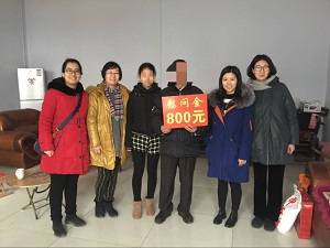 学生工作处杜艳、范雅文,辅导员庞德英、牟宇、朱孟斐带着慰问金和维尔康集团和济南传化泉胜公路港物流有限公司提供的慰问品来到济南市济阳县曲堤镇周家村王同学家中对其家庭进行慰问,并送去关怀。